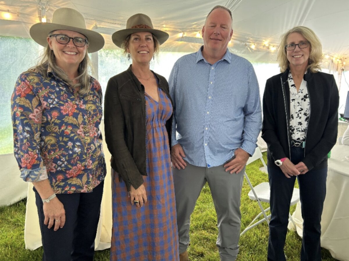 After announcing the fund in Janet Briggs name at her memorial service in Durham, NH, this photo was taken. From L-R: Katherine Cooper, USEA Foundation Development Officer, Deanna Briggs, Darrel Briggs (Mrs. Briggs two children), and Hilary Miskoe, President of the USEA Foundation Board of Trustees. (Deanna still rides and owns event horses and her daughter is an eventer as well).
